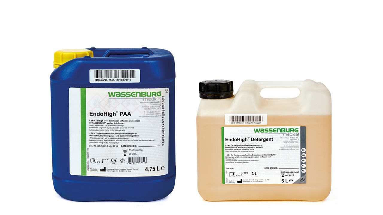 Kaikki EndoHigh® -tuotekombinaatiot on kehitetty Wassenburg® pesu- ja desinfiointiaautomaateille. Ne varmistavat erinomaisen ja 100% turvallisen prosessin suorituskyvyn. EndoHigh® PAA on peretikkahappoon perustuva nestemäinen korkean tason desinfiointiaine, jota käytetään termolabiileiden endoskooppien automaattiseen desinfektioon Wassenburg - laitteissa.